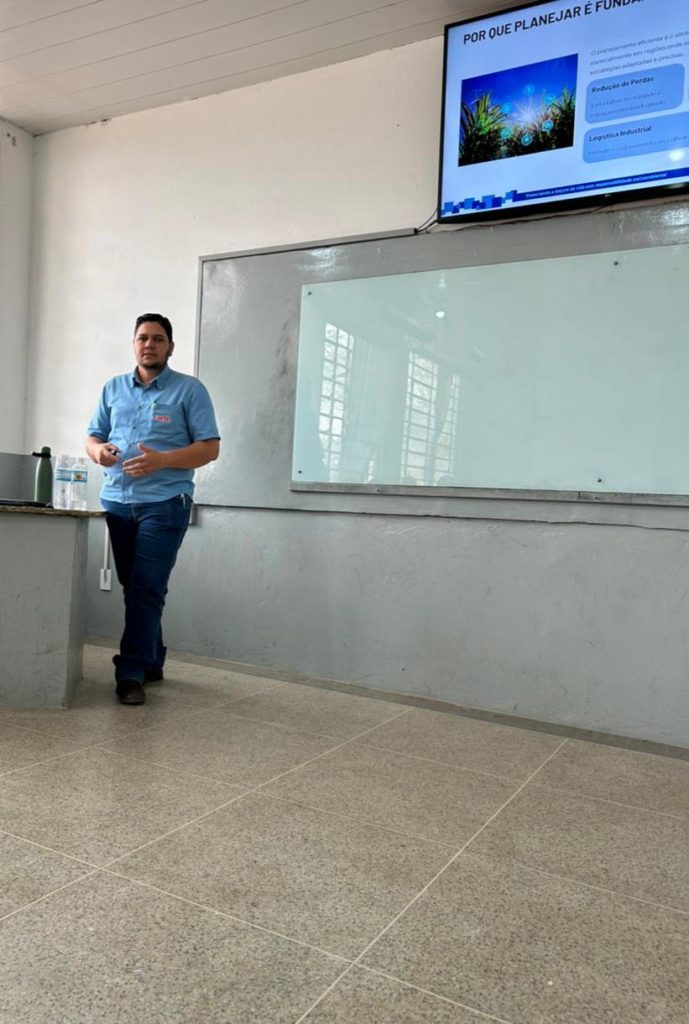 Com o tema “Planejamento de Plantio e Manejo Varietal: Estratégias para Maximizar a Produtividade na Cultura da Cana-de-Açúcar”, Deibson Souza compartilhou com os alunos do curso Técnico em Agropecuária os principais conceitos que norteiam a condução de um planejamento agrícola eficiente. Entre os tópicos abordados estiveram a importância do planejamento técnico, os pilares que sustentam as boas práticas de campo, a escolha de variedades adaptadas, as estratégias de aproveitamento do potencial genético e o manejo estratégico por ambiente, sempre com foco na produção sustentável.