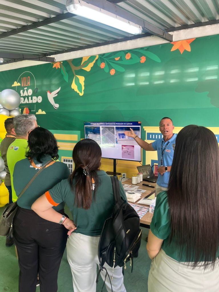 Durante a apresentação, Lenilson Santos e Mégido Roque mostraram aos participantes como é realizado o monitoramento da produção de açúcar na Unidade Marituba, localizada no município de Igreja Nova (AL). Eles detalharam todo o processo produtivo — desde a colheita da cana-de-açúcar até a fabricação do açúcar cristal e refinado — enfatizando as etapas que asseguram a qualidade do produto final.