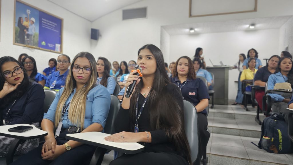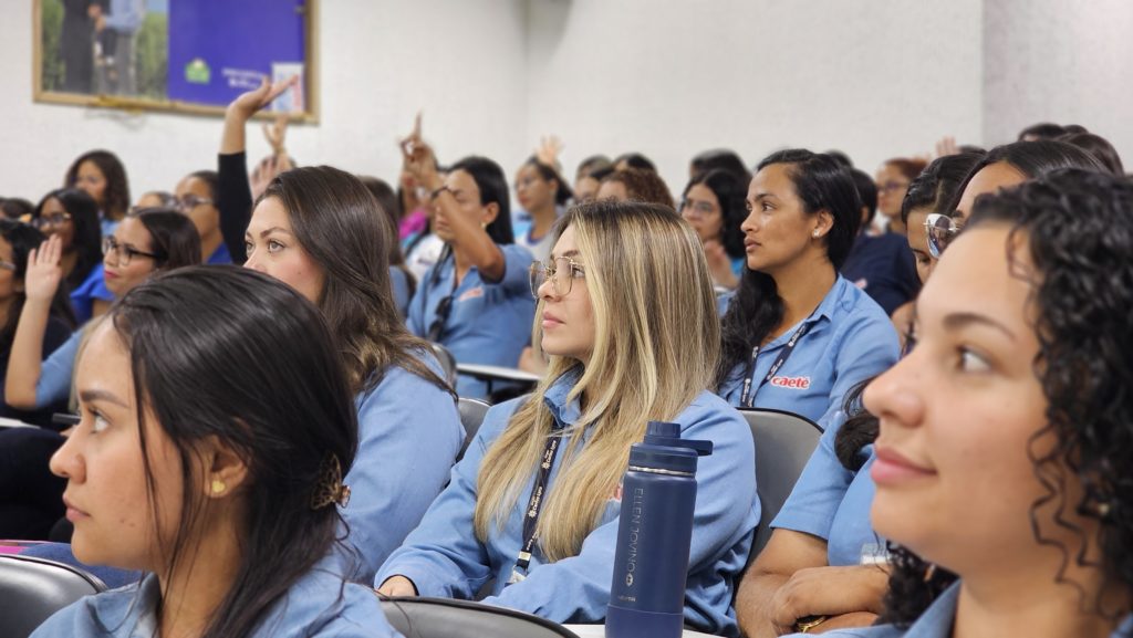 Estiveram presentes a especialista em neurociência e psicóloga do SENAR, Isabel Brito; a alergoimunologista da Usina, Eliane Jordão; a gerente de Gestão de Pessoas, Marta Luciana Sampaio; o gerente industrial da unidade Matriz, Juliano Sampaio; o diretor da Usina Caeté, Paulo Couto; o diretor-presidente, Aryl Lyra; e demais colaboradoras de diversos setores da empresa.