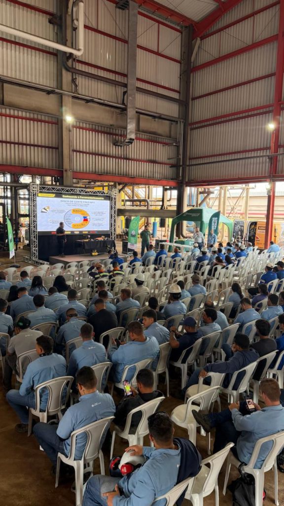 Na sequência, os participantes acompanharam uma palestra sobre segurança no uso de discos de corte abrasivos, ministrada pela empresa Norton. Durante a apresentação, foram abordados os cuidados necessários na utilização de ferramentas abrasivas, como esmerilhadeiras, além dos riscos associados ao uso inadequado desses equipamentos.