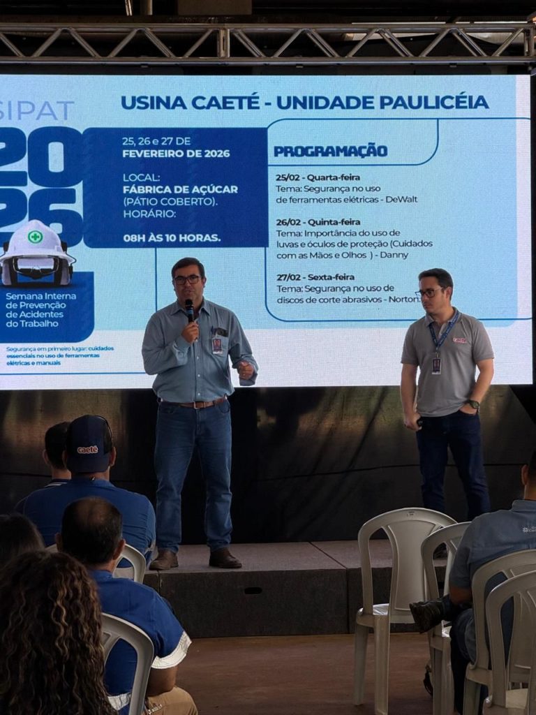 De acordo com o engenheiro de Segurança do Trabalho da Usina Caeté – Unidade Paulicéia, Victor Vinícius da Silva, ações como a SIPAT desempenham papel fundamental na construção de um ambiente de trabalho mais seguro. “A SIPAT é um momento importante para reforçar a cultura de prevenção dentro da empresa. Por meio dessas ações, conseguimos ampliar o conhecimento dos colaboradores, incentivar atitudes seguras e mostrar que cada pessoa tem um papel essencial na prevenção de acidentes.”